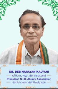 We, the members of National Institute of Homoeopathy Alumni Association (NIHAA) express our deepest sense of grief and profound sorrow over the sudden and untimely demise of our beloved President, Dr. Deb Narayan Kalyani, who breathed his last on March 26, 2026, after a brave battle with Motor Neurone Disease.